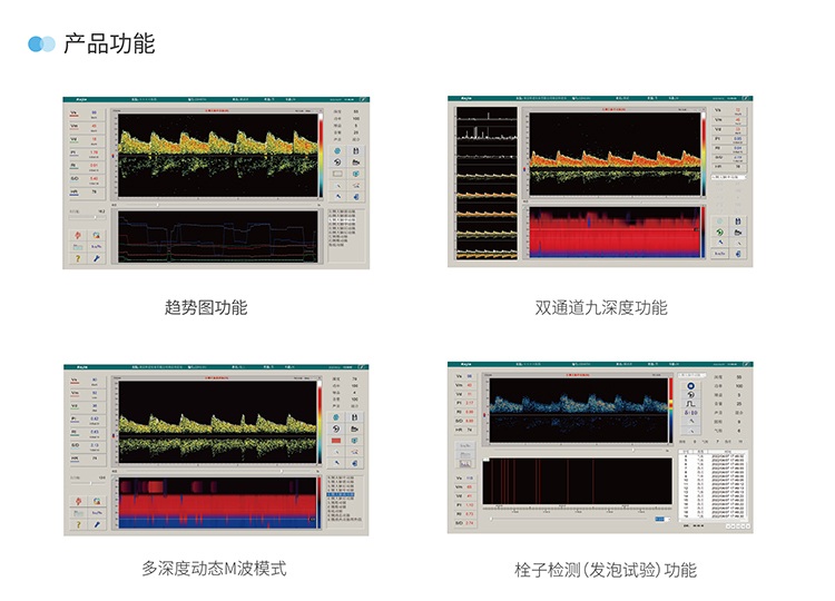 支持單通栓子與雙通栓子檢測(cè)模式,在血管選擇區(qū)還可選擇進(jìn)行屏氣試驗(yàn)與腦死亡試驗(yàn)
